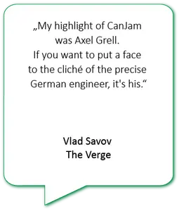 Through the media and trade press, through interviews and product presentations, and online forums. You can find me at trade shows such as IFA, High End Munich, CanJams, Tokyo Headphone Festivals, and CES.